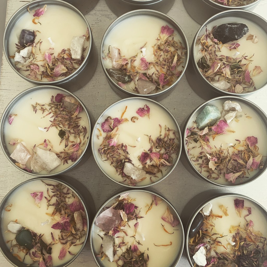 Hi my name’s Billie I identify as queer non binary. I make hand poured soy candles with healing crystals and organic spray free petals. My products are vegan and environmentally friendly. I have some super fun scents coming up soon! Check out my Instagram manu_rama_candles if you want to have a look.